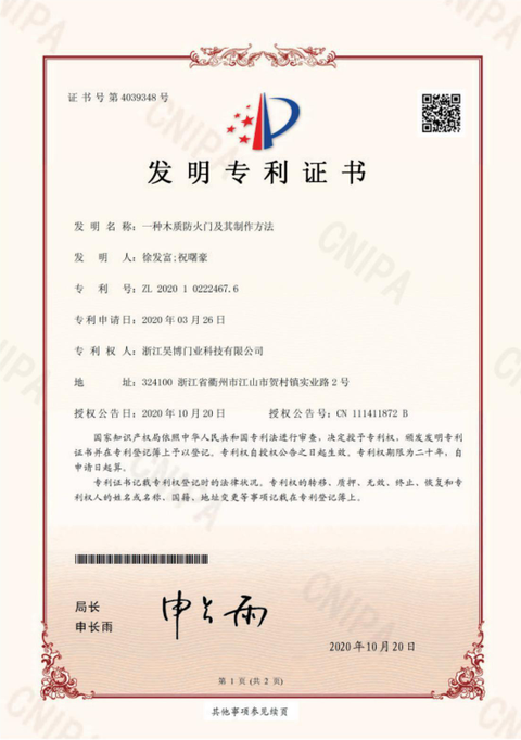 公司一直以來嚴格執行ISO9001質量體系和ISO14001環境管理體系標準,建立了完備的科研、開發、生產、銷售服務體系。公司是浙江省門業協會會員單位,江山門業協會理事單位,中國木材與木制品流通協會會員單位,江山市消防協會副會長單位。